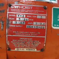 CM V2 3 Ton 2 Speed Electric Chain Hoist 3/24FPM 460V 20' Lift W/ Power Trolley