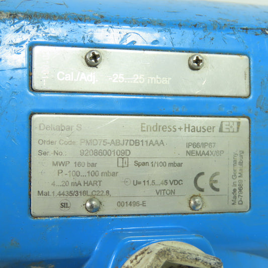 Endress Hauser PMD75-ABJ7DB11AAA Pressure Transmitter 11.5-45VDC 4-20mA 160Bar