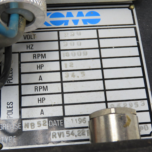 Komo RV154.22 230V 300Hz 18,000 RPM 12Hp Spindle ER40 From VR512 Tested