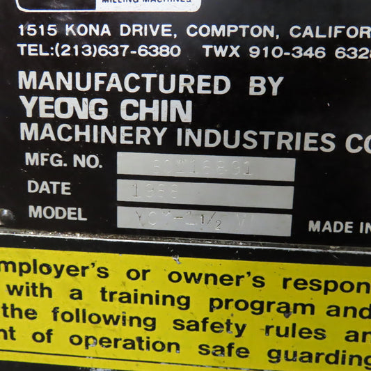 Supermax YCM-1-1/2VA 9" x 49" Vertical Knee Mill 3Hp 208/220-480V W/ DRO Readout