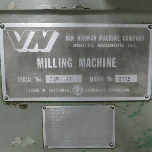 Van Norman 2R7.5 Horizontal Slitting Milling Machine 47" x 8" Table 230/460V 3PH