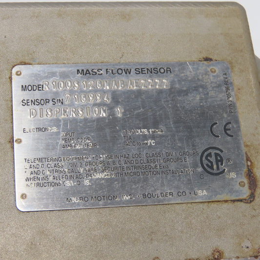 Micro Motion R100S128NABAEZZZZ Mass Flow Sensor 1450PSIG Tube -50 to 125°C