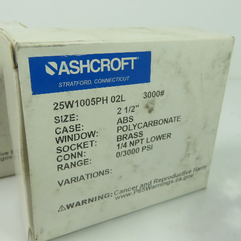 Ashcroft 25W1005PH 02L 0-3000PSI 2-1/2" Pressure Guage 1/4" NPT Lot Of 3