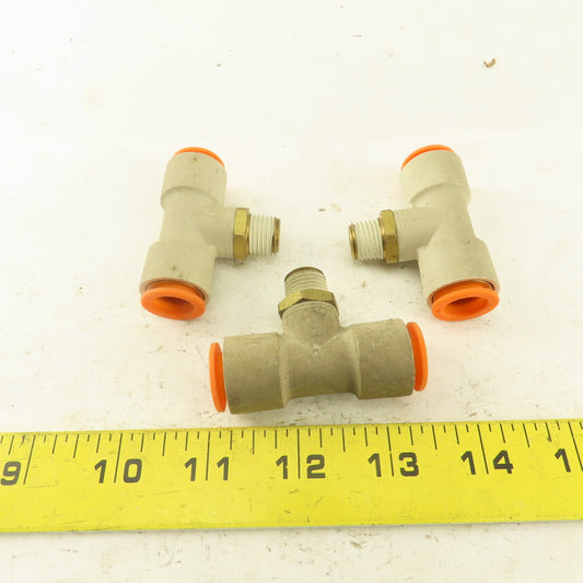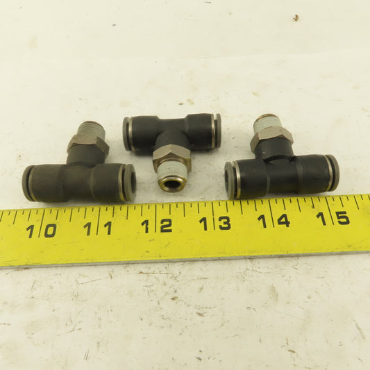 Push to Connect Branch Tee 1/2" Tube x 1/4" NPT Male Lot of 3