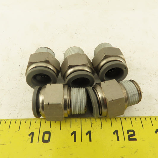 1/2" Tube Push To Connect x 3/8" NPT Male Hex Straight Connector Lot of 5