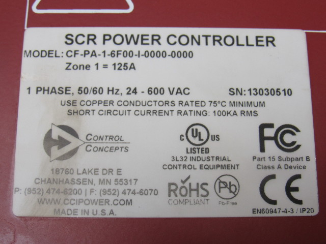 Control Concepts Fusion CF-PA-1-6F00-0000-0000 SCR Power Controller W/Interface