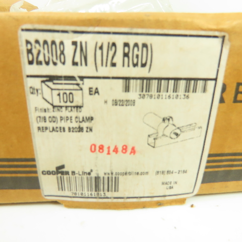 - Cooper B-Line B2008 ZN rigid pipe clamps