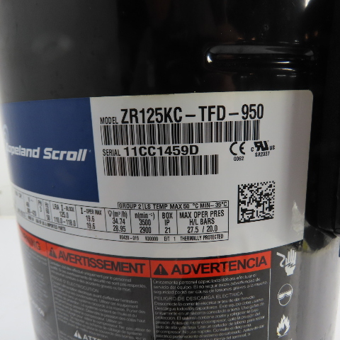Copeland ZR125KC-TFD-950 Scroll Refrigeration Compressor 10-Ton 460V 3Ph Tested