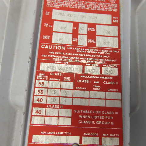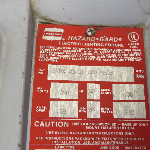 Crouse-Hinds EVMA 43251/480 Hazard-Gard Explosion Proof Light Fixture 250W 480V
