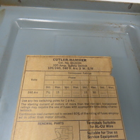 Cutler-Hammer DG223N 100A 3-Pole Fusible Safety Disconnect Switch 240V