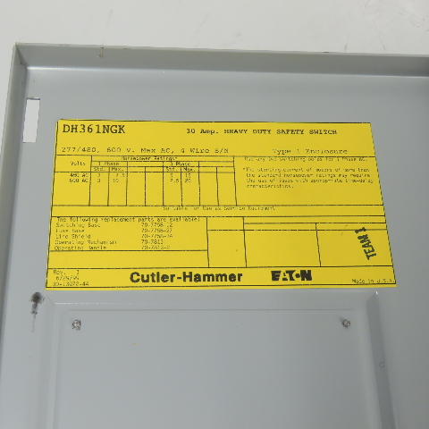 Cutler-Hammer DH361NGK 30A 3-Pole Fusible Safety Disconnect Switch 600V
