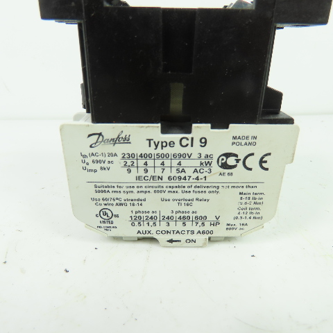 Danfoss 037H002132 CI 9 3-Pole Magnetic Contactor 20A 600V 440V Coil