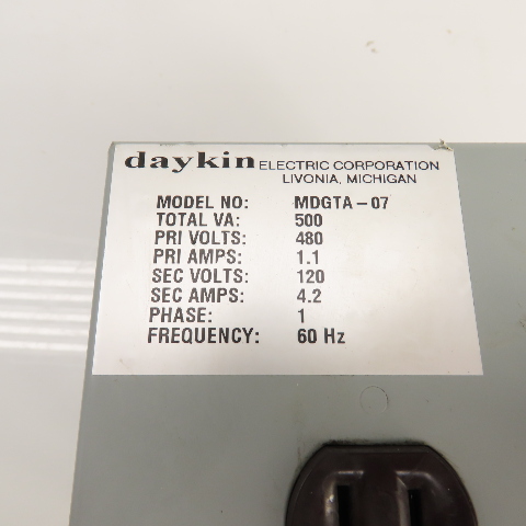 Daykin MDGTA-07 500VA Transformer Disconnect Pri 480V 1.1A Sec 120V 4.2A 1PH
