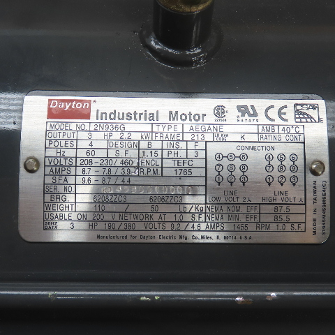 Dayton 2N936G 3HP AC Electric Motor 208-230/460V 3PH 1765RPM 213 Frame NEW