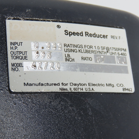 Dayton 4Z720 87:1 Ratio 13RPM Output .5Hp 230/460V 3Ph Gear Motor