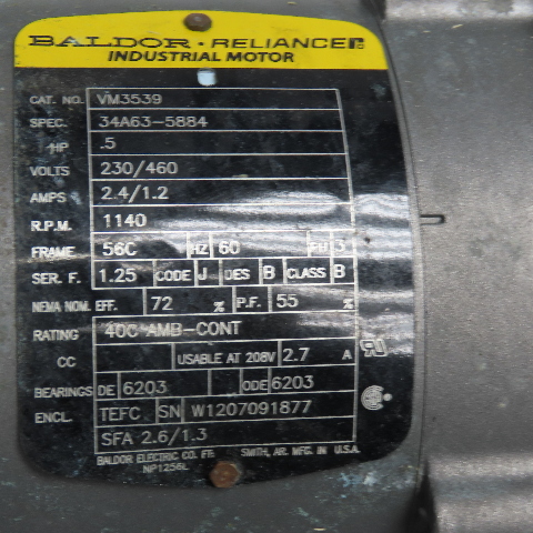 - Motor Brand: Baldor