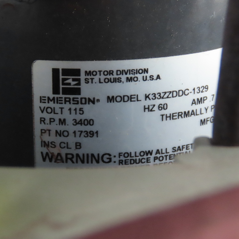 - Powered by Emerson K33ZZDDC-1329 electric motor