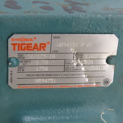 Dodge MR94751 P RV Tigear Right Angle Speed Reducer 10:1 Ratio 56C 175RPM Output