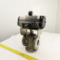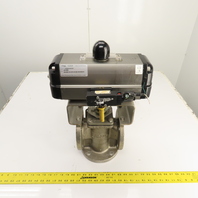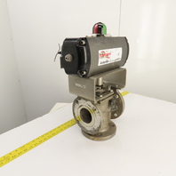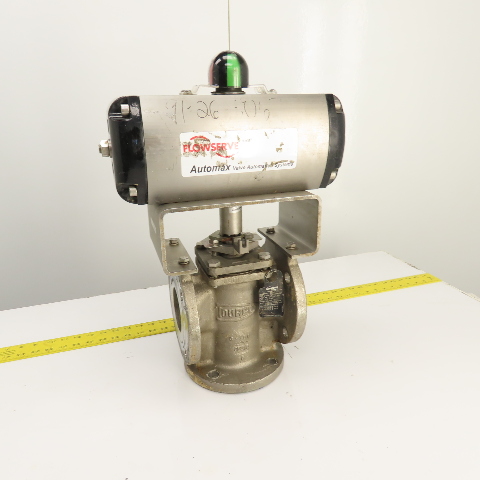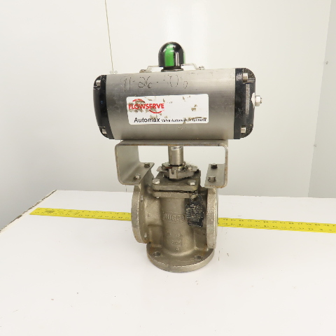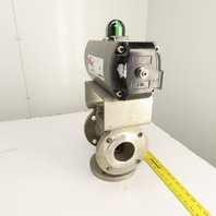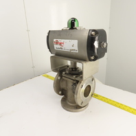 Durco 3" Stainless 3-Way Flanged Valve W/Flowserve Pneumatic Actuator B125DS