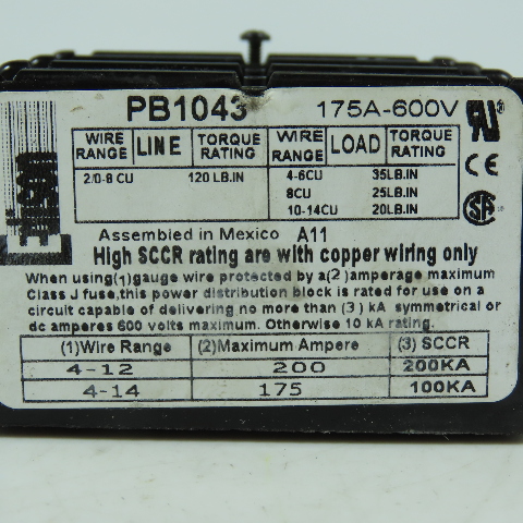 Edison PB1043 Power Distribution Block 3-Pole 175A 600V Open Style