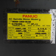 Fanuc A06B-1003-B100 3.7 / 5.5kW AC Spindle Motor 200V 3PH 4P 1500/6000RPM