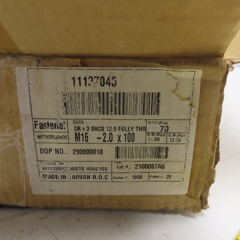 Fastenal 11137045 Class 12.9 M16-2.0 x 100mm Socket Head Cap Screws Lot Of 70