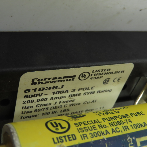 - Includes (3) Bussmann Low-Peak LPJ-100SP 100A dual-element time-delay fuses
