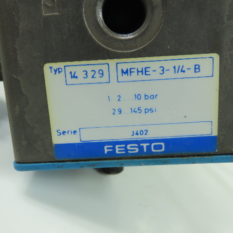 Festo MFHE-3-1/4-B Pneumatic Solenoid Valve 1/4" NPT 145PSI 10Bar 24V
