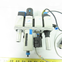 - Modular air preparation assembly including filter regulator, lubricator, and solenoid valve
