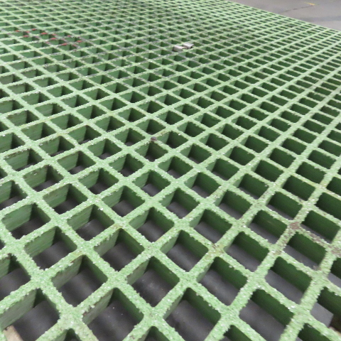 - Industrial work platform with green fiberglass grating top