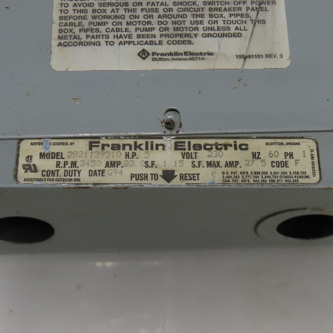 Franklin Electric 2821139310 5HP 230V 60Hz 1Ph Deluxe Motor Control Box 27.5 Max