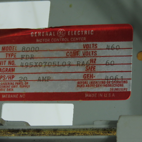 - GE 8000 Line Motor Control Center Unit