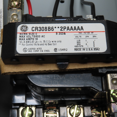 GE CR308B6**2PAAAAA 300 Line Size 0 Combination Starter 600VAC 120V Coil