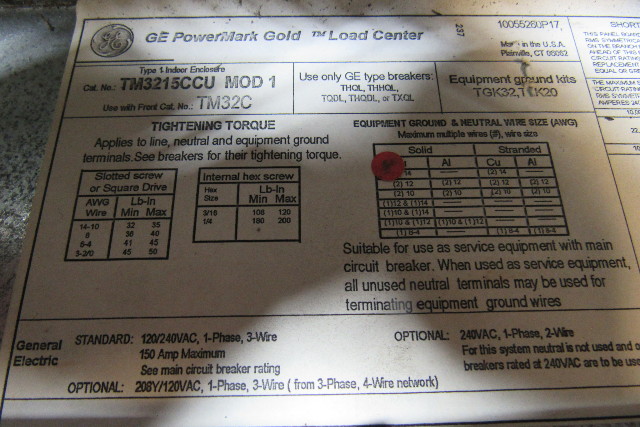 GE General Electric TM32C & Tm3215CCU Breaker Panel Load Center 32 Space