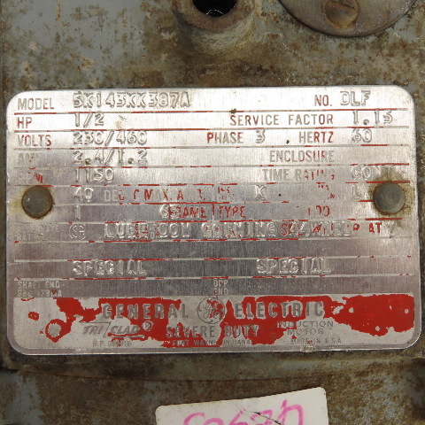 - General Electric 5K143KK387A 1/2HP electric motor 230/460V 1150 RPM