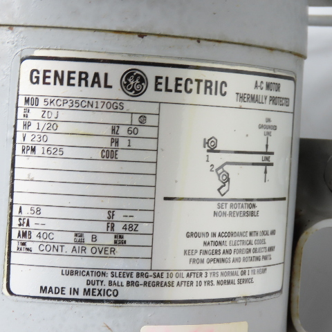 - 1/20 HP power rating