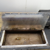 - Stainless steel reservoir with residual adhesive present