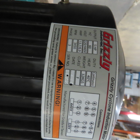Grizzly G0601 5HP 3Ph Cyclone Dust Collector 220V/440V 3450RPM