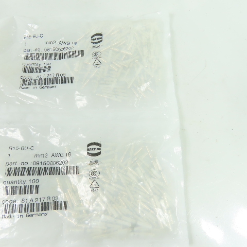 Harting 09150006202 Han R15 Female Crimp Contacts 18 AWG 1mm2 Lot of 200