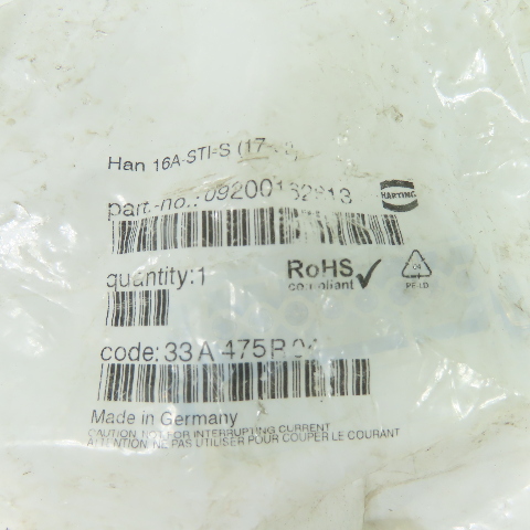 HARTING 09200162613 Han 16A-STI-S 16 Pin Male Insert Screw Terminal NEW