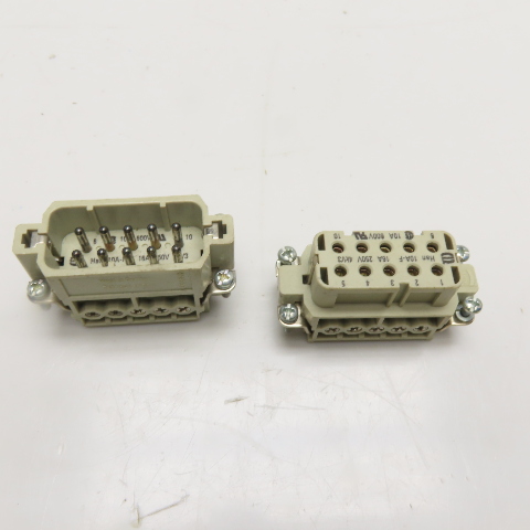 Harting Han 10A 10-Pin Male and Female Insert Set 600V 10A 250V 16A