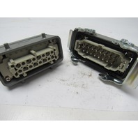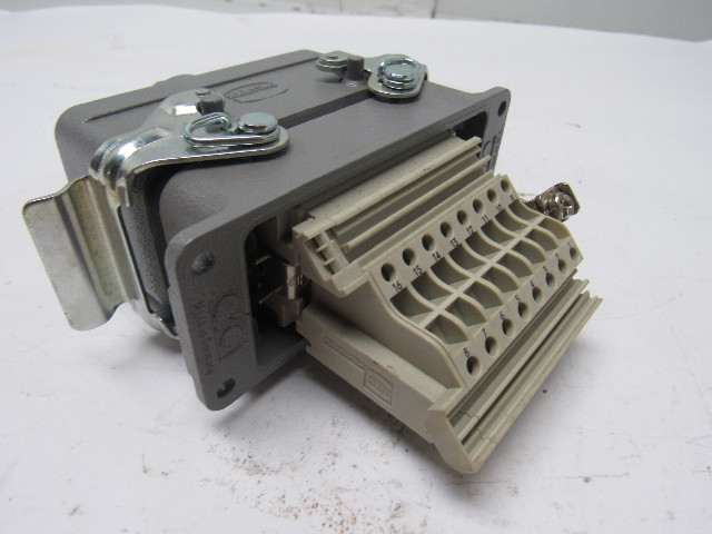 Harting Han 16 Hv E Series 16 Pin Housing Assembly Base & Hood W/Inserts
