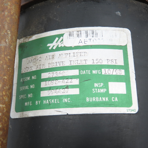 Haskel 27360 AAD-2 Air Amplifier Max Air Drive Inlet 150 PSI