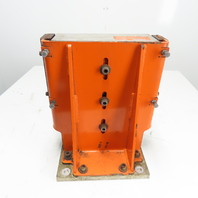 - Mounted on a heavy rectangular base plate with four corner mounting holes