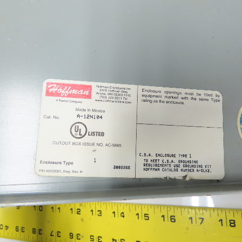 Hoffman A-12N104 12"x 10"x 4" Electrical Enclosure Type 1 Wall Mount