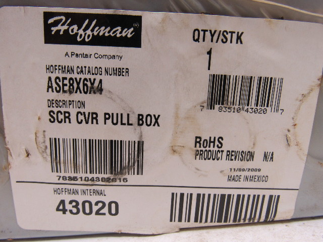 Hoffman ASE8X6X4 43020 Metallic Pull Box Enclosure 8" x 6" x 4" Screw Cover