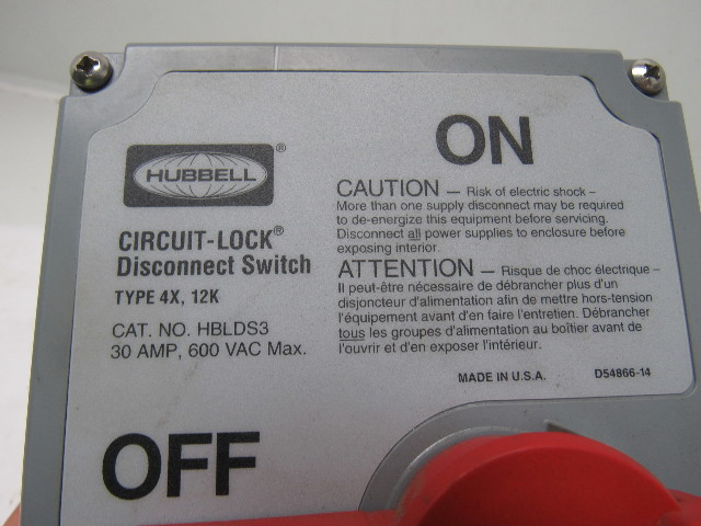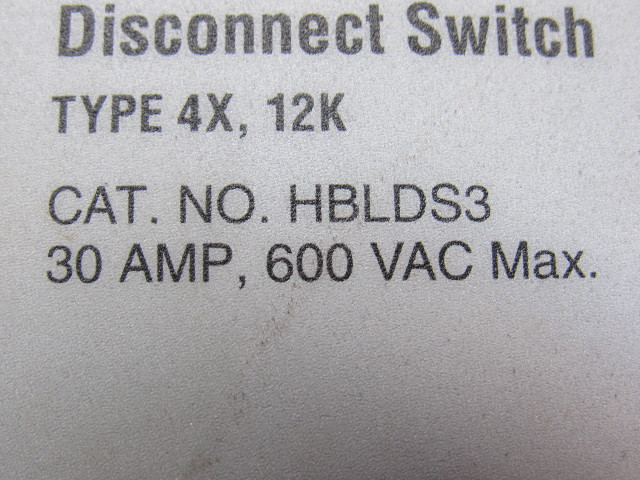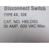 Hubbell HBLDS3 Motor Disconnect Switch 600V 30A Non Fused