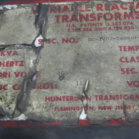 Hunterdon SC-1282 Teaser -8 460V 60kVa 51V Sec. Variable Reactance Transformer