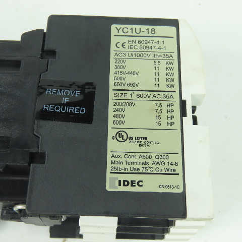Idec YC1U-18 Contactor 600VAC 35A 120V Coil