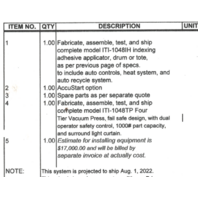 Industrial Technologies International ITI-1048IH Lamination Press Bag System 50'